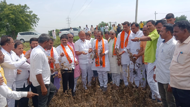ಬೀದರ್: ಜಿಲ್ಲೆಯ ಬಿಜೆಪಿ ಮುಖಂಡರು ಬೀದರ್ನಾದ್ಯಂತ ಸಂಚರಿಸಿ ಅತೀವೃಷ್ಟಿಯಿಂದ ಉಂಟಾಗಿರುವ ಬೆಳೆ ಹಾನಿಯನ್ನು ವೀಕ್ಷಿಸಿದರು. ಈ ವೇಳೆ ಶಾಸಕ ಪ್ರಭು ಚವ್ಹಾಣ್ (Prabhu Chauhan) ಬೆಳೆ ಹಾನಿಯ ಬಗ್ಗೆ ವಿವರಣೆ ನೀಡಿದರು.