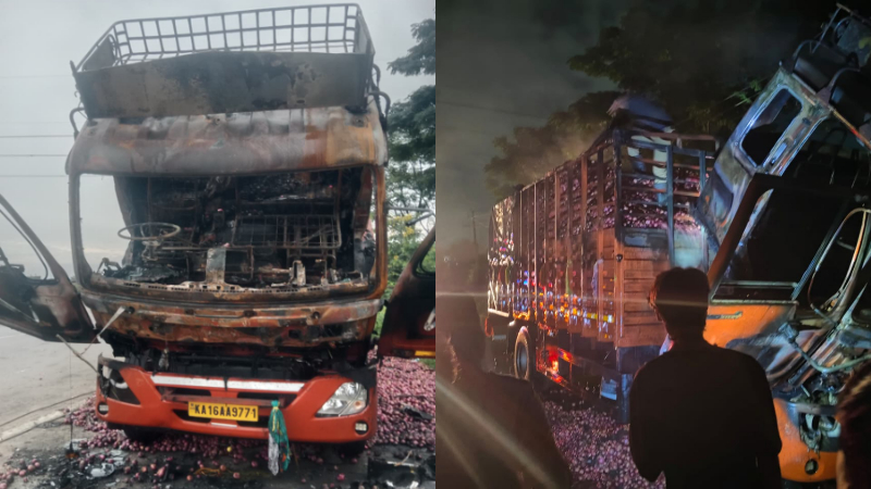 ನೆಲಮಂಗಲ | ಬೆಳ್ಳಂಬೆಳಗ್ಗೆ ಈರುಳ್ಳಿ ತುಂಬಿದ್ದ ಲಾರಿ ಬೆಂಕಿಗಾಹುತಿ