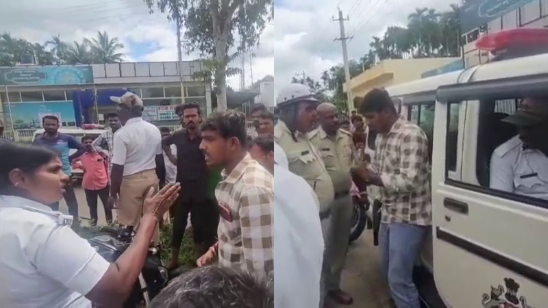 ಕೋರ್ಟ್ನಲ್ಲಿ ದಂಡ ಕಟ್ಟುತ್ತೇನೆ ಎಂದಿದ್ದಕ್ಕೆ ಒಪ್ಪದ ಪೊಲೀಸರು – ಸವಾರ, ಟ್ರಾಫಿಕ್ ಪೊಲೀಸರ ನಡುವೆ ವಾಗ್ವಾದ