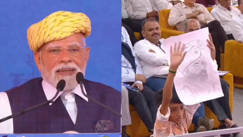 ಪ್ರಧಾನಿಗೆ ತಾನು ಬಿಡಿಸಿದ ಚಿತ್ರ ಕೊಟ್ಟು ಭಾವುಕನಾದ ಬಾಲಕ – ವೇದಿಕೆಯಿಂದಲೇ ಸಮಾಧಾನ ಮಾಡಿದ ಮೋದಿ