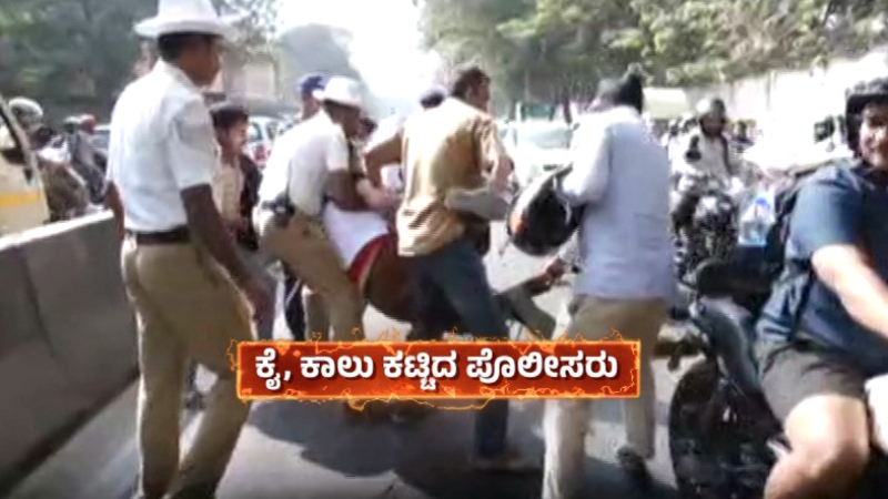 ಮೆಕ್ರಿಸರ್ಕಲ್ ಬಳಿ ಚಾಲಕನ (Driver) ಜೊತೆ ಮಾತನಾಡುತ್ತಾ ಜಗಳ ಮಾಡಿದ್ದಾನೆ. ಬಳಿಕ ನಡು ರಸ್ತೆಯಲ್ಲಿ ಕಾರಿನ ಮೇಲೆ ಹತ್ತಿ ಹುಚ್ಚನಂತೆ ವರ್ತಿಸಿದ್ದಾನೆ. ಟ್ರಾಫಿಕ್ ಪೊಲೀಸರಿಂದ ಸಮಾಧಾನ ಮಾಡಲು ಮುಂದಾದಾಗ ಅವರ ಮೇಲೆಯೇ ಹಲ್ಲೆ ನಡೆಸಿದ್ದಾನೆ. ಹುಚ್ಚಾಟ ಜೋರಾಗುತ್ತಿದ್ದಂತೆ ಬೇರೆ ಯಾರ ಮೇಲೂ ಹಲ್ಲೆ ಮಾಡಬಾರದು ಎಂದು ಪೊಲೀಸರು ಕೈ ಕಾಲು ಕಟ್ಟಿ ರಸ್ತೆಯಲ್ಲಿ ಮಲಗಿಸಿದ್ದಾರೆ.