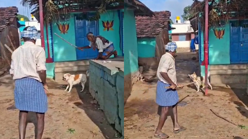 ಕೋಳಿ, ಮೇಕೆಗಳನ್ನು ಕಚ್ಚುತ್ತಿದೆ ಎಂದು ನಾಯಿಯನ್ನು ಕಂಬಕ್ಕೆ ಕಟ್ಟಿಹಾಕಿ, ಇಬ್ಬರು ವೃದ್ಧರು ದೊಣ್ಣೆಯಿಂದ ಮನಬಂದಂತೆ ಹಲ್ಲೆ ನಡೆಸಿದ್ದಾರೆ.ಇದನ್ನೂ ಓದಿ: ಬಸ್ಸಿನಲ್ಲಿ ಪುತ್ರಿಗೆ ಲೈಂಗಿಕ ಕಿರುಕುಳ – ಚಾಲಕನ ಬಟ್ಟೆ ಬಿಚ್ಚಿ ಥಳಿಸಿದ ತಾಯಿ