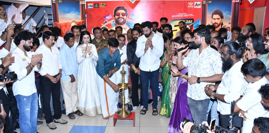 ಮಂಗಳೂರು: ಆರ್ಎಸ್ ಸಿನಿಮಾಸ್, ಶೂಲಿನ್ ಫಿಲಂಸ್, ಮುಗ್ರೋಡಿ ಪ್ರೊಡಕ್ಷನ್ ಲಾಂಛನದಲ್ಲಿ ತಯಾರಾದ ರೂಪೇಶ್ ಶೆಟ್ಟಿ ನಿರ್ದೇಶನದ ಜೈ ಸಿನಿಮಾ ಭಾರತ್ ಸಿನಿಮಾಸ್ನಲ್ಲಿ ಶುಕ್ರವಾರ ಬಿಡುಗಡೆಗೊಂಡಿತು.