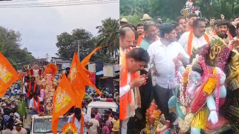 ಐಬಿ ಸರ್ಕಲ್ನಲ್ಲಿ ಅಶೋಕ್, ಸಿ.ಟಿ.ರವಿ, ಅಶ್ವಥ್ ನಾರಾಯಣ್ರನ್ನು ಹೊತ್ತು ಕಾರ್ಯಕರ್ತರು ಕುಣಿದರು. ಕೇಸರಿ ಬಾವುಟ ಹಿಡಿದು ಅಶೋಕ್ ಸಾಗಿದರು. ಅಭಿಮಾನಿಯೋರ್ವ ಅಂಬರೀಶ್ ಫ್ಲೆಕ್ಸ್ ಹಿಡಿದು ಬಂದಾಗ ಅಭಿಮಾನಿಗಳ ಹರ್ಷೋದ್ಘಾರ ಜೋರಾಗಿತ್ತು. ಕಲ್ಲು ತೂರಿದ್ದ ಮಸೀದಿ ಮುಂಭಾಗ ಮೆರವಣಿಗೆ ಬಂದಾಗ ಭಾರಿ ಪ್ರಮಾಣದಲ್ಲಿ ಕರ್ಪೂರ ಹಚ್ಚಲಾಯಿತು. ಬಳಿಕ ಹೊಳೆ ಆಂಜನೇಯ ದೇವಾಲಯ ಬಳಿಯ ಶಿಂಷಾ ನದಿಯಲ್ಲಿ ಗಣೇಶ ಮೂರ್ತಿಗಳ ವಿಸರ್ಜನೆ ನಡೀತು.