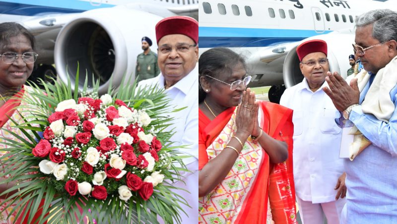 ಮೈಸೂರಿಗೆ ಆಗಮಿಸಿದ ರಾಷ್ಟ್ರಪತಿ ದ್ರೌಪದಿ ಮುರ್ಮು – ರಾಜ್ಯಪಾಲ, ಸಿಎಂರಿಂದ ಆತ್ಮೀಯ ಸ್ವಾಗತ