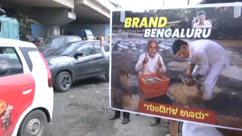 ರಸ್ತೆ ಗುಂಡಿಗಳ ಮುಂದೆ ಕುಳಿಯು ಬಾಯಿ ಬಾಯಿ ಬಡಿದುಕೊಳ್ಳುತ್ತಿರುವ ಪ್ರತಿಭಟನಾಕಾರರು, ತಾವೇ ಗುಂಡಿ ಮುಚ್ಚುವ ಕೆಲಸವನ್ನೂ ಮಾಡುತ್ತಿದ್ದಾರೆ. ಮಾಜಿ ಶಾಸಕ ನೇಲ ನರೇಂದ್ರ ಬಾಬು, ಉಪ ಮೇಯರ್ ಹರೀಶ್ ಸಹ ಗುಂಡಿ ಮುಚ್ಚುವ ಕೆಲಸದಲ್ಲಿ ತೊಡಗಿದ್ದಾರೆ.