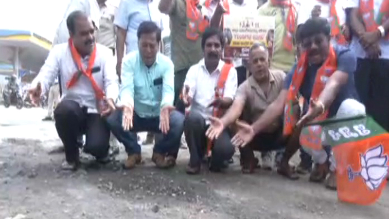 – ತಾವೇ ಖುದ್ದು ಗುಂಡಿ ಮುಚ್ಚಿದ ಬಿಜೆಪಿ ನಾಯಕರು