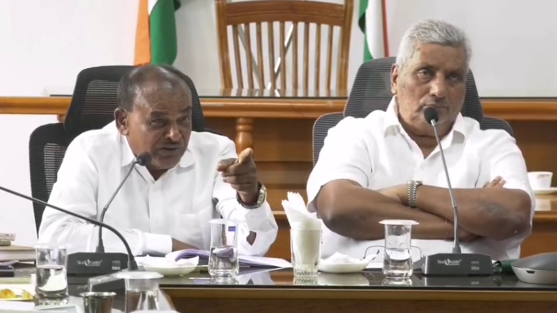 ನಿನ್ನ ಜವಾಬ್ದಾರಿ ಮಾಡಪ್ಪ ಎಂದು ಶಾಸಕ ಪುಟ್ಟರಂಗಶೆಟ್ಟಿಗೆ ಸಚಿವ ವೆಂಕಟೇಶ್ ಹೇಳಿದರು. ಡಿಸಿ ಬಳಿ ಪ್ರಾಕೃತಿಕ ವಿಕೋಪ ಅನುದಾನ ಇದೆ. ಪಟ್ಟಣಪ್ರದೇಶಕ್ಕೆ ಅನುದಾನ ಕೊಡುವ ಜವಾಬ್ದಾರಿ ಡಿಸಿ ಅವರದ್ದು ಅಂತ ಶಾಸಕ ಪುಟ್ಟರಂಗಶೆಟ್ಟಿ ಹೇಳಿದರು. ‘ಹೇಳಿದ್ದನ್ನ ಕೇಳ್ರೀ… ಜವಾಬ್ದಾರಿ ಡಿಸಿಯದ್ದೆ ಅಂತ ಒಪ್ಕೊಳ್ಳೋಣ’ ಎಂದು ಸಚಿವರು ಪ್ರತಿಯಾಗಿ ಮಾತನಾಡಿದ್ದಾರೆ. ಇದು ಡಿಸಿ ಕರ್ತವ್ಯ ಎಂದು ಶಾಸಕ ಉತ್ತರಿಸಿದರು. ಇದು ಸ್ಥಳೀಯ ಸಂಸ್ಥೆಗಳಲ್ಲಿ ಜನಪ್ರತಿನಿಧಿಗಳು ಇದ್ದಮೇಲೆ ಡಿಸಿ ಹೇಗೆ ಜವಾಬ್ದಾರಿ ಎಂದು ಸಚಿವರು ಪ್ರಶ್ನಿಸಿದರು. ಕ್ರಿಯಾ ಯೋಜನೆಗೆ ಸಹಿ ಹಾಕೋದೆ ಡಿಸಿ ಅಂತ ಶಾಸಕ ಪ್ರತಿಯಾಗಿ ಮಾತನಾಡಿದರು. ಪ್ರಾಕೃತಿಕ ವಿಕೋಪ ಅನುದಾನ ಬಳಕೆಗೆ ಬರ ಘೋಷಣೆಯಾಗಬೇಕು. ಅದೇ ಬೇರೆ ಹಣ ಎಂದು ಸಚಿವರು ಸಮಜಾಯಿಸಿ ನೀಡಿದರು.