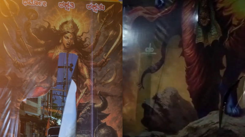 ಸಾರ್ವಜನಿಕ ದಸರಾ ಮಹೋತ್ಸವದ ಶೋಭಾಯಾತ್ರೆ ಹಿನ್ನಲೆ ಫ್ಲೆಕ್ಸ್‌ಗಳನ್ನು ಅಳವಡಿಸಲಾಗಿತ್ತು. ಈ ಫ್ಲೆಕ್ಸ್‌ಳಿಗೆ ಬ್ಲೇಡ್‍ನಿಂದ ಕತ್ತರಿಸಿ ಕಿಡಿಗೇಡಿಗಳು ವಿಕೃತಿ ಮರೆದಿದ್ದಾರೆ. ಈ ಹಿಂದೆ ಇದೇ ಜಾಗದಲ್ಲಿ `ಐ ಲವ್ ಮಹಮ್ಮದ್’ ಬ್ಯಾನರ್ (I Love Mohammed Flex) ವಿಚಾರಕ್ಕೆ ಗಲಾಟೆಯಾಗಿತ್ತು. ಇದನ್ನೂ ಓದಿ: ದಾವಣಗೆರೆಯಲ್ಲಿ ವಿಜಯದಶಮಿ ಶೋಭಾಯಾತ್ರೆ – 50,000 ಮಂದಿ ಭಾಗಿ, ಕಣ್ಮನ ಸೆಳೆಯುತ್ತಿರುವ ಟ್ಯಾಬ್ಲೋಗಳು