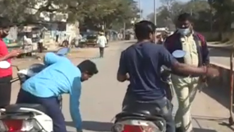 ನಗರದ ಅಶೋಕ ವೃತ್ತದಲ್ಲಿ ವೀಕೆಂಡ್ ಕರ್ಫ್ಯೂ ಹಿನ್ನೆಲೆಯಲ್ಲಿ ಪೊಲೀಸರು ಮಾಸ್ಕ್ ಪರಿಶೀಲನೆ ಮಾಡುತ್ತಿದ್ದರು. ಈ ವೇಳೆ ಬೈಕ್ ಸವಾರ ಮಾಸ್ಕ್ ಹಾಕದೇ ರಸ್ತೆಯಲ್ಲಿ ಬರುತ್ತಿದ್ದ. ಇದನ್ನು ಗಮನಿಸಿದ ಪೊಲೀಸ್ ಪೇದೆ ವಾಹನ ಸವಾರನಿಗೆ ಮಾಸ್ಕ್ ಕೇಳಿದ್ದಾರೆ. ಅದಕ್ಕೆ ಆ ಸವಾರ ಬೇಕಿದ್ದರೆ ಮನೆಗೆ ಹೋಗಿ ತೆಗೆದುಕೊಂಡು ಬರ್ತೀನಿ ಎಂದು ಬೈಕ್ ಸವಾರ ಬೇಜವಾಬ್ದಾರಿಯಿಂದ ಉತ್ತರಿಸಿದ್ದಾನೆ. ಇದನ್ನೂ ಓದಿ: 50 ಕೋಟಿ ರೂ. ಜಾಗತಿಕ ಕ್ರೆಡಿಟ್ ಕಾರ್ಡ್ ಹಗರಣ ಭೇದಿಸಿದ ಪೊಲೀಸರು – 7 ಜನ ಅರೆಸ್ಟ್